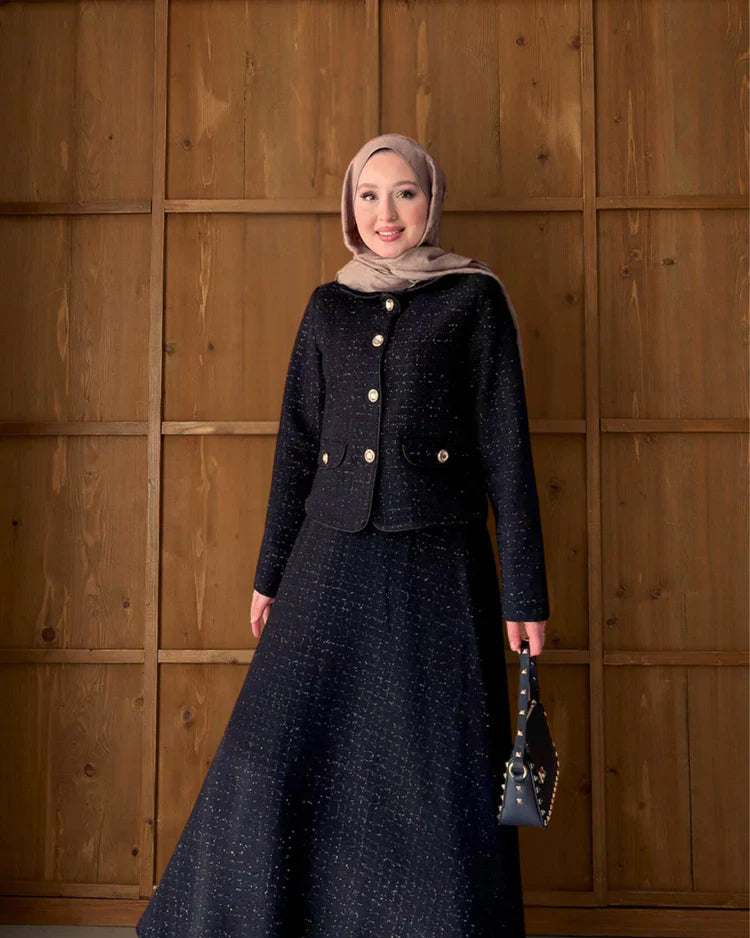 SAVE 35%Yakası Kürklü Triko Takım Siyah