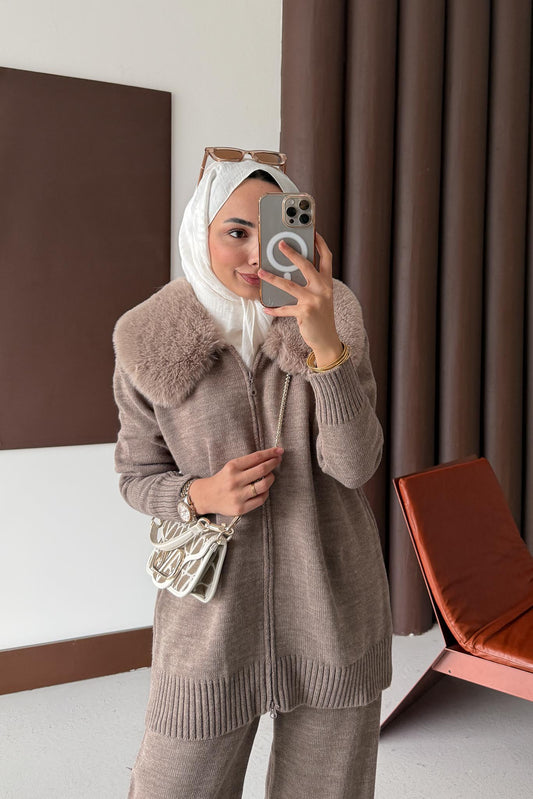 Yakası Kürklü Triko Takım Menenj(Ön Sipariştedir)