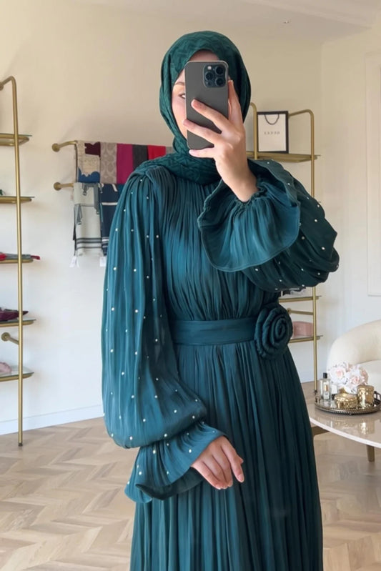 SAVE 50%Maria İpek Taşlı Elbise Zümrüt