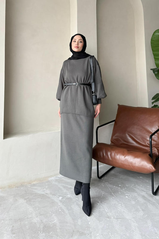 Minimal Balon Kollu Takım Antrasit