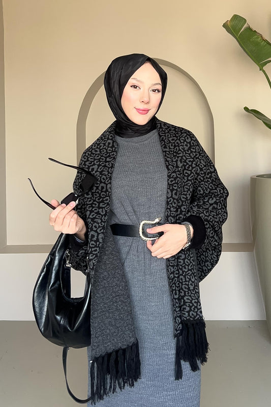 Leopar Şal Panço Siyah