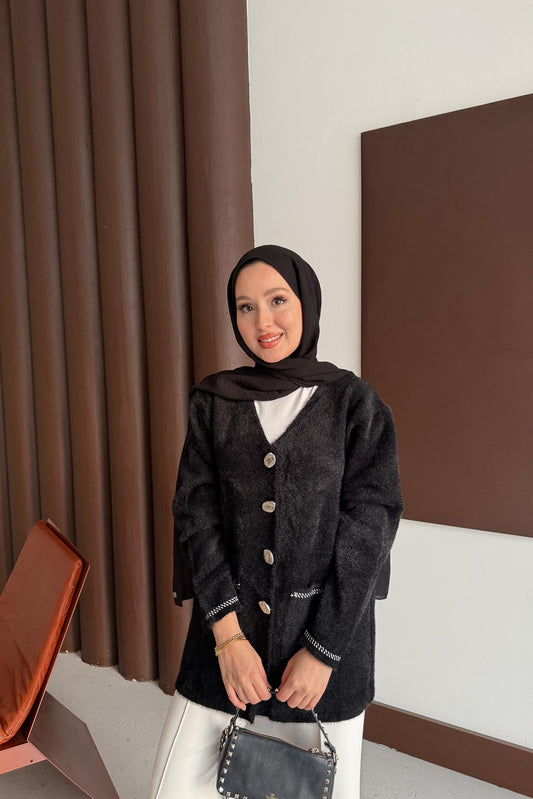 SAVE 20%Gold Varaklı Angora Hırka Siyah