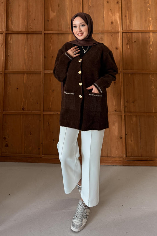 SAVE 20%Gold Varaklı Angora Hırka Kahverengi