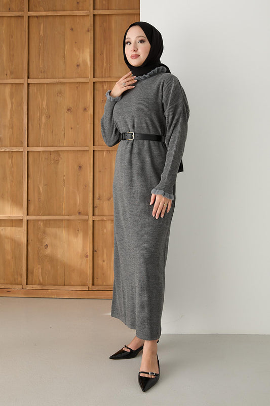 SAVE 26%Asel Angora Dokulu Elbise Antrasit