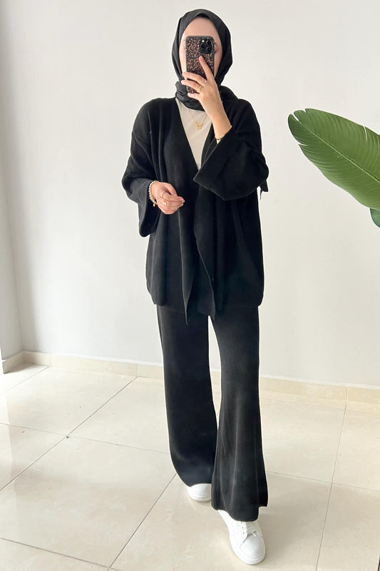 SAVE 6%Bağlamalı Kimono Takım Siyah