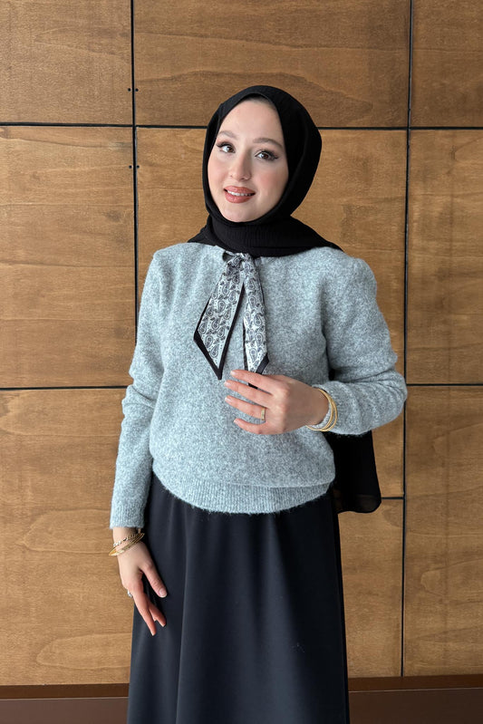 Espana Şallı Triko Tunik Gri