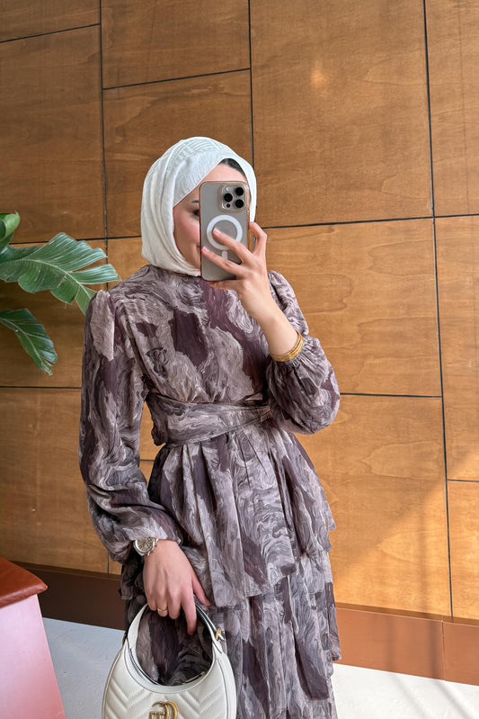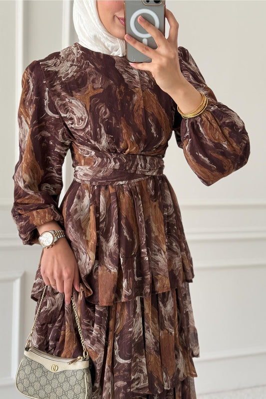 SAVE 38%Pinar Desenli Elbise Kahverengi