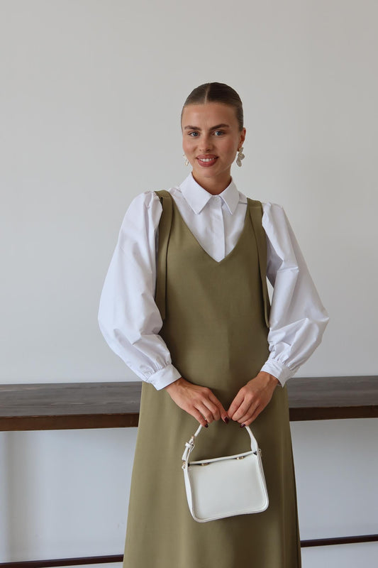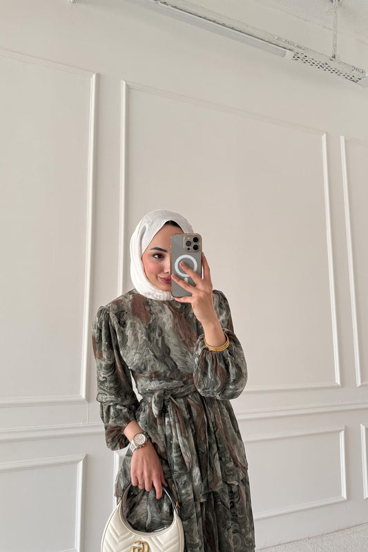 SAVE 38%Pelerin Broş Düğmeli Elbise Haki