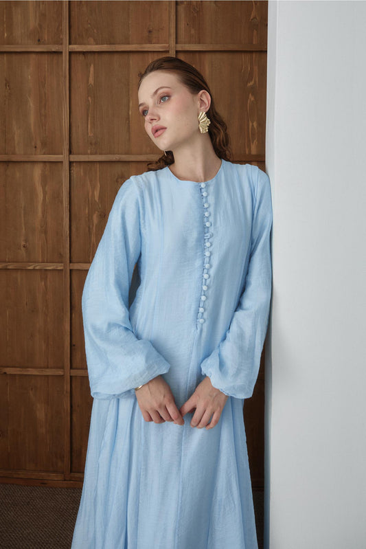 SAVE 37%Sedef Şifon Düğmeli Elbise Bebe Mavi