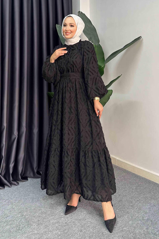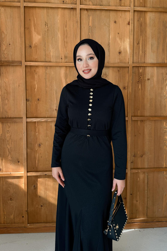 SAVE 38%Pelerin Broş Düğmeli Elbise Siyah