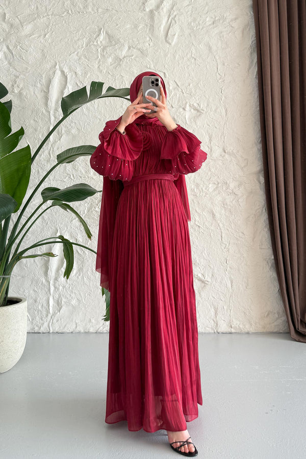 Maria İpek Taşlı Elbise Bordo